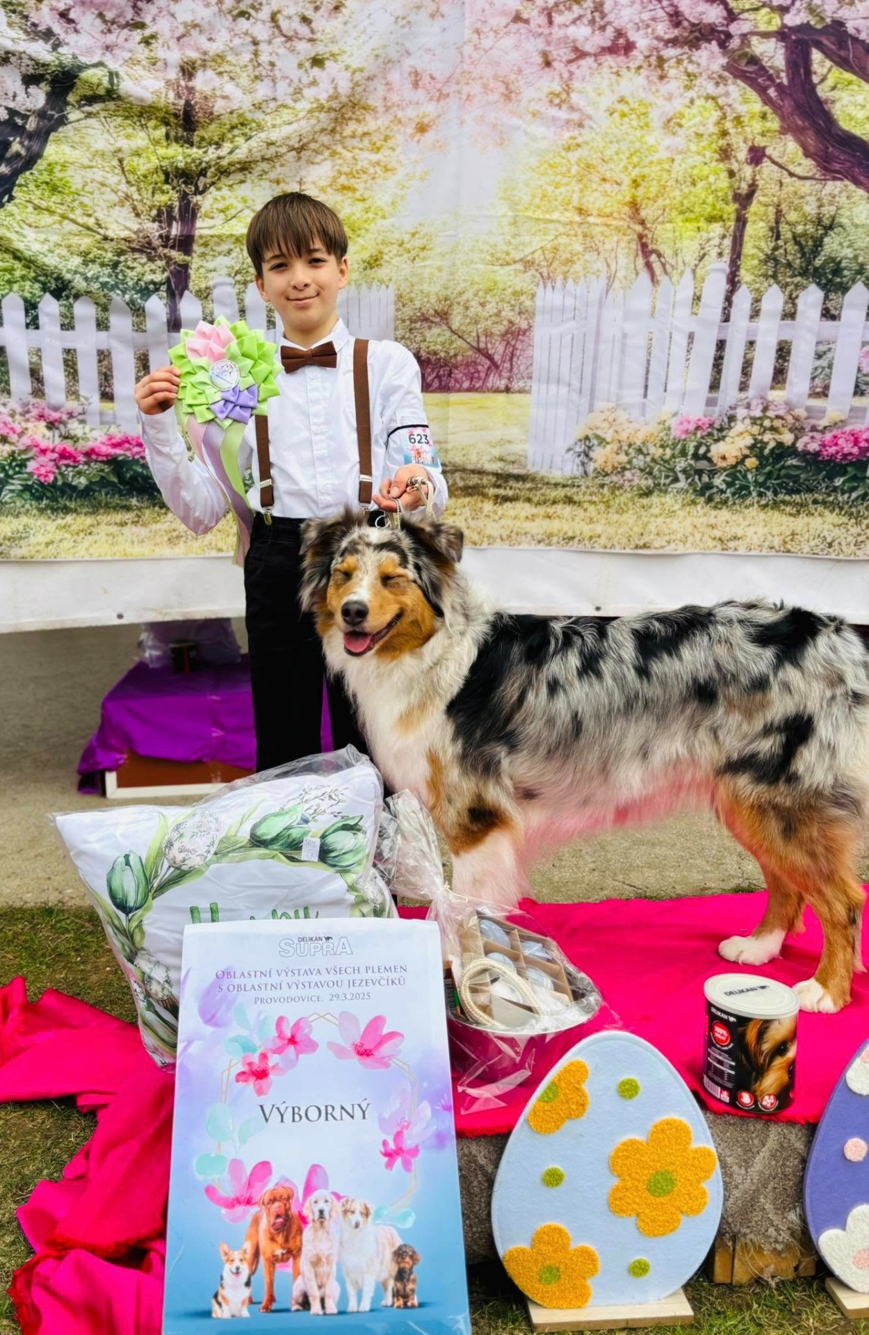 Dnešní den byl ale speciální pro syna Davídka. Tato výstava byla jeho první, kde se účastnil junior handlingu a hned s neskutečným výsledkem. Tvrdě na sobě makal, učil se a trénoval s Hailey. Takže oficiálně a pyšně oznamujeme, že se tým Davídka a Hailey umístil na krásném druhém místě z dvanácti handlarů.